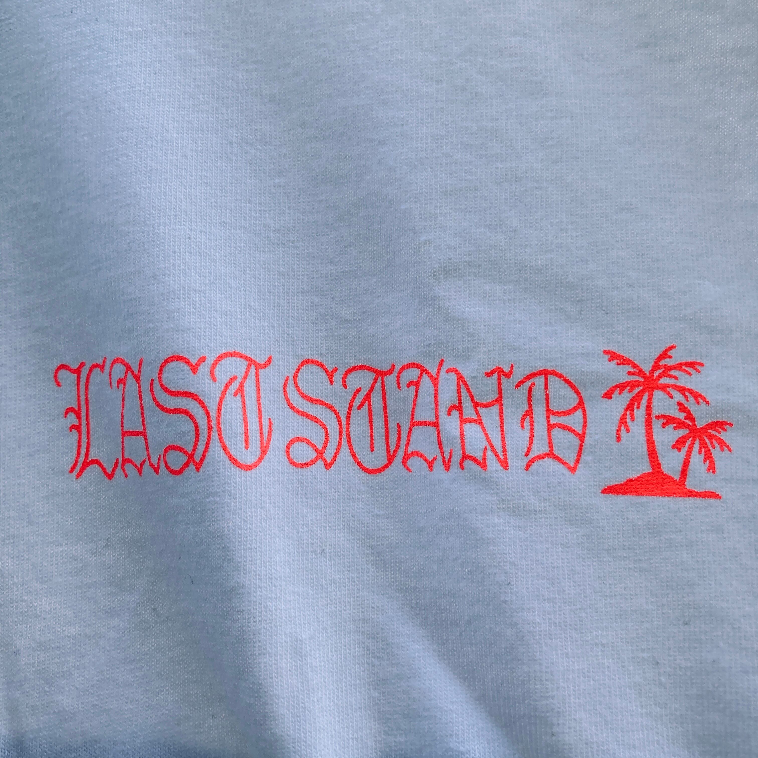 "LAST ISLE" S/S TEE WHT×NEON RED